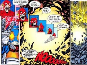 Ve stejné sérii našel svou smrt i Flash. Zemře při ochraně Země, kdy běží tak rychle, že to nikdo nepokládal za možné, až do bezvědomí, aby zabránil Anti-Monitoru vymazat svět. I toto bylo jedno z těch úmrtí, která ve světě komiksu mají silnou váhu.
