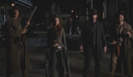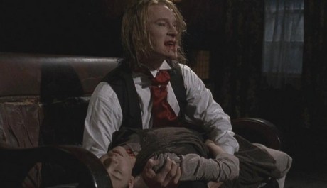 Problém totiž nastává, když se v tomto snímku – primárně vnímaném jako upírský krvák, byť v netradičním prostředí – začnou objevovat postupy typické pro western. Jakmile přijde na řadu pistolnický souboj, pohyblivá kamera se střídá s dlouhými a statickými detaily na oči pistolníků. Okamžik střelby je pak v této i v jiných akčních scénách ztvárněn zpomalenou, notně trhanou obrazovou sekvencí s velice opožděnou reakcí herců na zásah kulkou.
