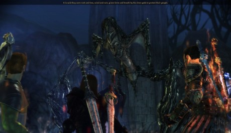 Společníky si opět najdete postupem hry. Elfí bojovnice, která hledá starodávnou knihu svého lidu, člen Kruhu mágů, který vám nadšeně nabídne své služby a třetí do party je od začátku hafan mabari, jemuž můžete dát nové jméno a následně s ním počůrávat jednotlivá místa ve hře. Parta dobře funguje, nikdo (samozřejmě kromě vás) nevyniká silou nebo nadáním. Opět navštívíte staré lokace, které ale vlastně jen rychle proběhnete a necháte za sebou kopec mrtvol. Malý rozdíl v lokacích: věž Kruhu mágů je uklizená od svinčíku z vaší první návštěvy.