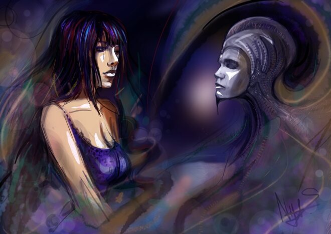 „Moment, už to bude, musel jsem si jednu zapálit. V tý tmě to bylo fakt stresující,“ ozvalo se z lampy. A opravdu, netrvalo to dlouho. Brzy se černý dým začal měnit na fialový. Ten už nestoupal vzhůru, ale plazil se po pouštním písku. Pod jejíma nohama se začalo ozýval kašlání, klení nebo něco mezi tím. Chvíli si Vendy myslela, že něčí plíce velmi rychle změní ubytovací zařízení.