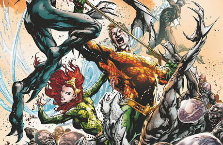 Aquaman po boku své ženy Mery zobrazen v nemilosrdné bitvě.