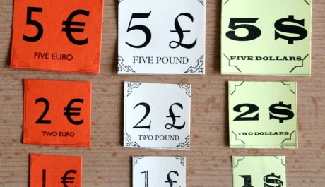 Nesmíme zapomenout na tři druhy peněz (libry, dolary a eura), o jejichž smyslu si povíme později. Na závěr nechybí tradiční figurky a kostka. Jako bonus dostanete ke hře také tři tematická pexesa. Samozřejmě obrázky jsou doprovázeny anglickými a odpovídajícími českými názvy.