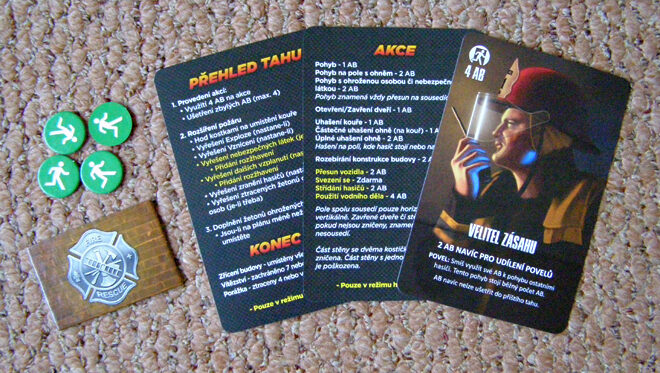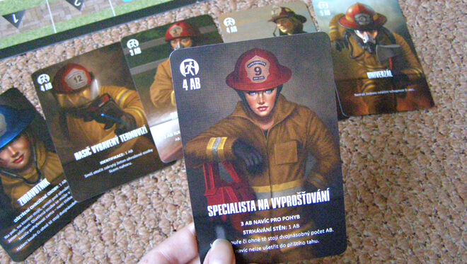 Vnímavější detailista se také bezpochyby zasměje u karty specialisty na vyprošťování. Namalovaná, štíhlá sexy kočka, jež se v hasičském oděvu ohání dvacetikilovými hydraulickými nůžkami, výborný námět na divoké sny nejen pro hasiče. Jako nadsázka budiž, ale pokud tu byla žena coby hasička myšlena vážně, pak autorovi nejspíše vynechal selský rozum. Samozřejmě, že o ženách může být u tohoto povolání také řeč, ale spíše v rámci operačních středisek, kam pro změnu úvodní text pravidel nelogicky dosadil řadového hasiče.