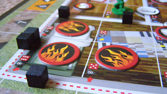 Hra poměrně věrně napodobuje problémy se zásahem spojené a účastníkům to příliš neulehčuje. Každý má omezený počet akcí, jež může v danou chvíli provést, přičemž oheň se s každým tahem dál šíří. Přesnou polohu a směr požáru, ale stejně tak i umístění osob, nebezpečných látek, nebo fakt, jestli se podaří s vodním dělem uhasit oheň v požadovaném místě, to vše určují dvě kostky. Jedna červená – klasická šestistěnná, a druhá černá, osmistěnná.