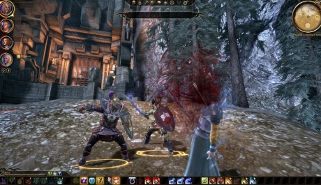 Jak obstál soubojový systém? Na rovinu: všichni baldurovci teď můžou přeskočit odstavec. Každá z postav má svoji vlastní lištu s rychlými sloty pro schopnosti a předměty v inventáři. Jakmile uzříte nepřátelskou bandu, v klidu si hru zapauzujete, protáhnete se, rozdělíte příkazy a opět pustíte. Družina udělá to, co jste chtěli, a vy se rozmýšlíte, co dál. Chvilku se koukáte, jak si vaše parta v boji vede, pak opět pauza, rozkazy, pokoukání a znova a znova, dokud se protivník nekoupe v kaluži vlastní krve. Mě se tenhle systém líbí, už třeba proto, že kamera má úhel pohledu 360°, přičemž se můžete koukat z ptačí perspektivy (samozřejmě to funguje i v jeskyních, ale psát z netopýří perspektivy je pitomost) nebo na záda vámi právě vybrané postavy.