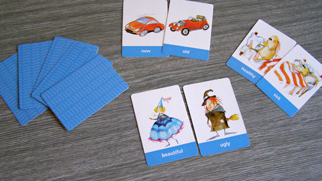 Vedle balíčku karet s jídlem a zvířaty se v krabici nachází ještě karty s vybranými přídavnými jmény, konkrétně s anglickými antonymy. Ty lze využít k celkem klasické partičce Černého Petra, kdy onoho Petra představuje moudrá sova, a nebo jen k hledání dvojic. Teoreticky mohou hráči využít karty třebas i k pexesu, záleží na jejich fantazii.
