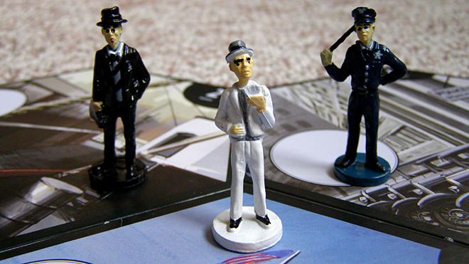 Menší grafická rozmanitost však v tomto ohledu vůbec ničemu nevadí. Beztak se o náležitou estetickou stránku starají pěkné kresby na kartách a deskách lokací, načež i detailně tvarované figurky starosty, policisty a nájemného vraha.