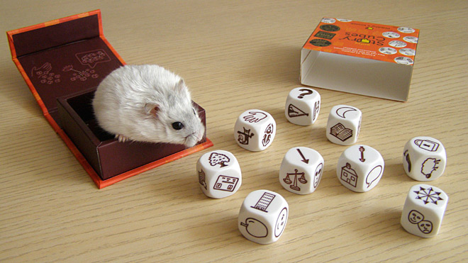 První kostku lze vybrat různými způsoby (křeček není součástí balení)