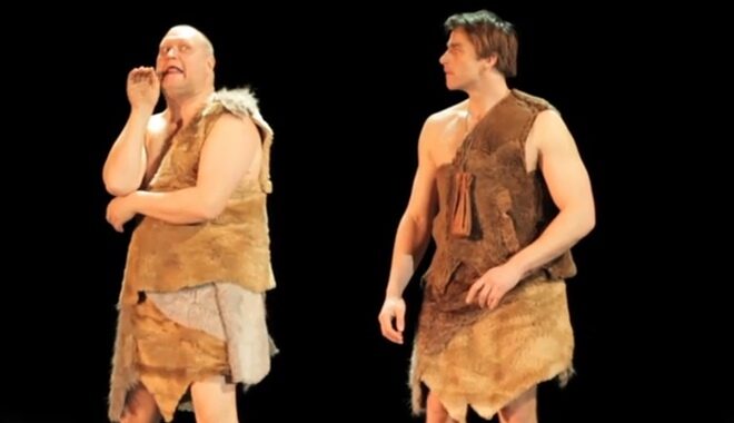 Strýc učí Leemeta hadí řeči na divadelních prknech., Zdroj: youtube.com