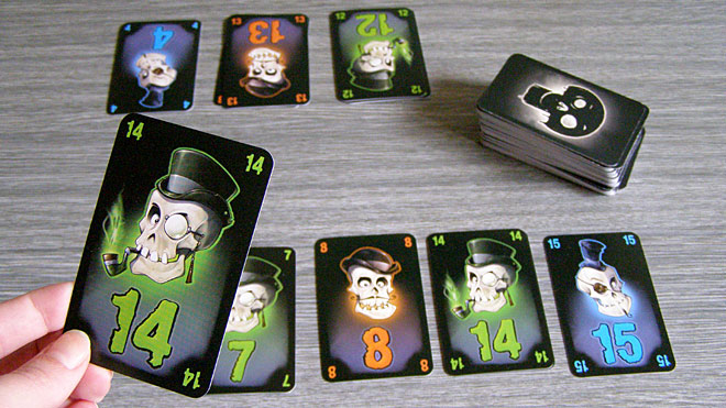 Jediná část hry se zároveň rovná jedinému typu karet, žádné přehledové tu nejsou potřeba. Rozdíly vytváří jen tři různé lebky, současně s tím tři různé barvy a hodnoty od jedné do patnácti u každého druhu.