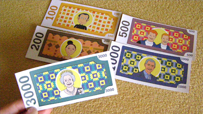 Ve hře se snad až na materiál nedá nic označit za všední. Kostky primárně zdobí písmena T, L a další zvláštní symboly, ale vzhledem k malým čísílkům se s nimi lze i snadno klasicky dopočítat šesti. Velmi originální jsou i figurky. Hráči si mohou zvolit jednu ze čtyř ženských nebo čtyř mužských postav. Nejde však o ledajaké postavy, ale o známé osobnosti. Konkrétně o Billa Gatese, Madeleine Allbrightovou, Coco Chanel, princeznu Dianu, Claudii Schiferovou, Baracka Obamu, Dalajlamu a Mr. Beana. Podlouhlé žetony s jejich vydařenými podobiznami si hráči zasazují až do čtyř stojanů, podle toho, kolik účastníků hraje.