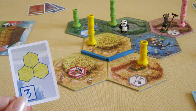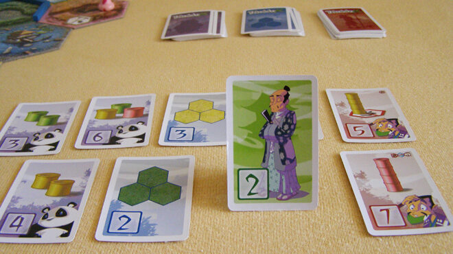 Úkoly soupeřům předurčují tři druhy karet. Jedny názorně ukazují, kolik bambusu se má vypěstovat, druhé, kolik sežrat, a třetí přeurčují tvar bambusového pole. A aby to nebylo tak jednoduché, rostou zde bambusy zelené, žluté a růžové. Takže co karta, to jiný požadavek nejen na počet, ale i barvu. Plus se nesmí zapomínat na zavlažení všech polí.
