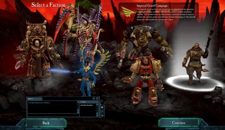Hra nás zavede do válkou zmítaného sektoru, kde jedni slouží císaři (Vesmírní Mariňáci), druzí ho nesnáší (Chaos), třetím na něm nesejde (Eldaři), čtvrtí se chtějí jen poprat (Orkové) a pátí by rádi sežrali celou galaxii (Tyranidi). Šestá, nově hratelná Imperiální garda, to přijela vyčistit. U strategie warhammerovského typu nelze čekat lepší zápletku. Kampaň si můžete projet za každou rasu, vždy však ten samý příběh.