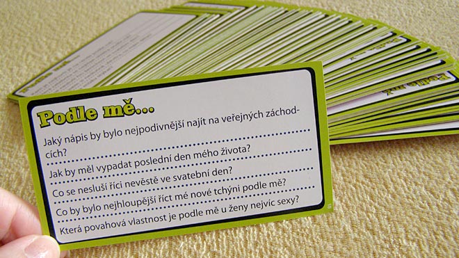 Co bych řekla luciferovi, aby mě pustil z pekla? Co schovávám pod postelí? Která celebrita nemá na to být celebritou podle mě? To je jen velmi chabý výčet z daných možností výběru. Hra čítá celkem čtyři sta otázek, tudíž pro standardně zapáleného hráče se riziko ohrání a vystřílení nábojů rovná nule, zvláště za předpokladu měnící se sestavy účastníků.