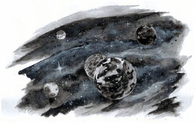 Ven se vůbec nedostal. Mohl jen skrze ušpiněná okna pozorovat divoké vichřice, zuřící v podivném a věčně potemnělém světě, do kterého se neprozřetelně vetřel. Za celý půlrok tady pamatoval jen tři dny, kdy se daly natáčet ty idylické záběry úchvatných scenérií a venku se nemuselo chodit ve skafandrech. To pak kolonisté rychle sklapli ochranné skleníky nad svými poli s mizernými zakrslými plodinami a natáčeli videomateriál, který se posléze pořádně počítačově vyretušoval. Když se dofilmovalo, ti úchvatní nadšení lidé ztratili své úsměvy a propadli se zpátky do svého většího, či menšího zoufalství. Nadšení, to tu velmi brzo přešlo každého.