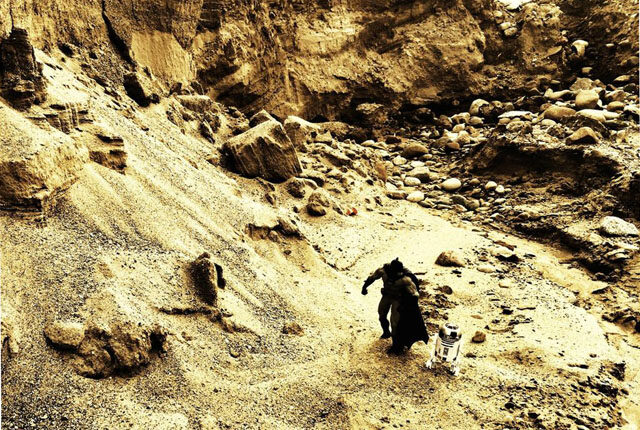Vše začalo poměrně nevinně. Jednoho dne sdílel Zack Snyder na svém Twitteru fotografii svého ocelového hrdiny se světelným mečem v ruce, a protože to nebylo dost, následovala fotka i druhého hrdiny následujícího filmu, Batmana. Ten se pro změnu prochází po skalnaté a písčité krajině s robotem R2-D2, nesoucí popisek Batman & R2BIN.