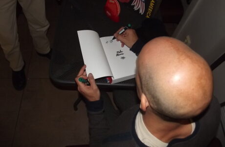 Mike Diana zachycen při podpisu knihy Live-Die. Foto: Jan Šuška